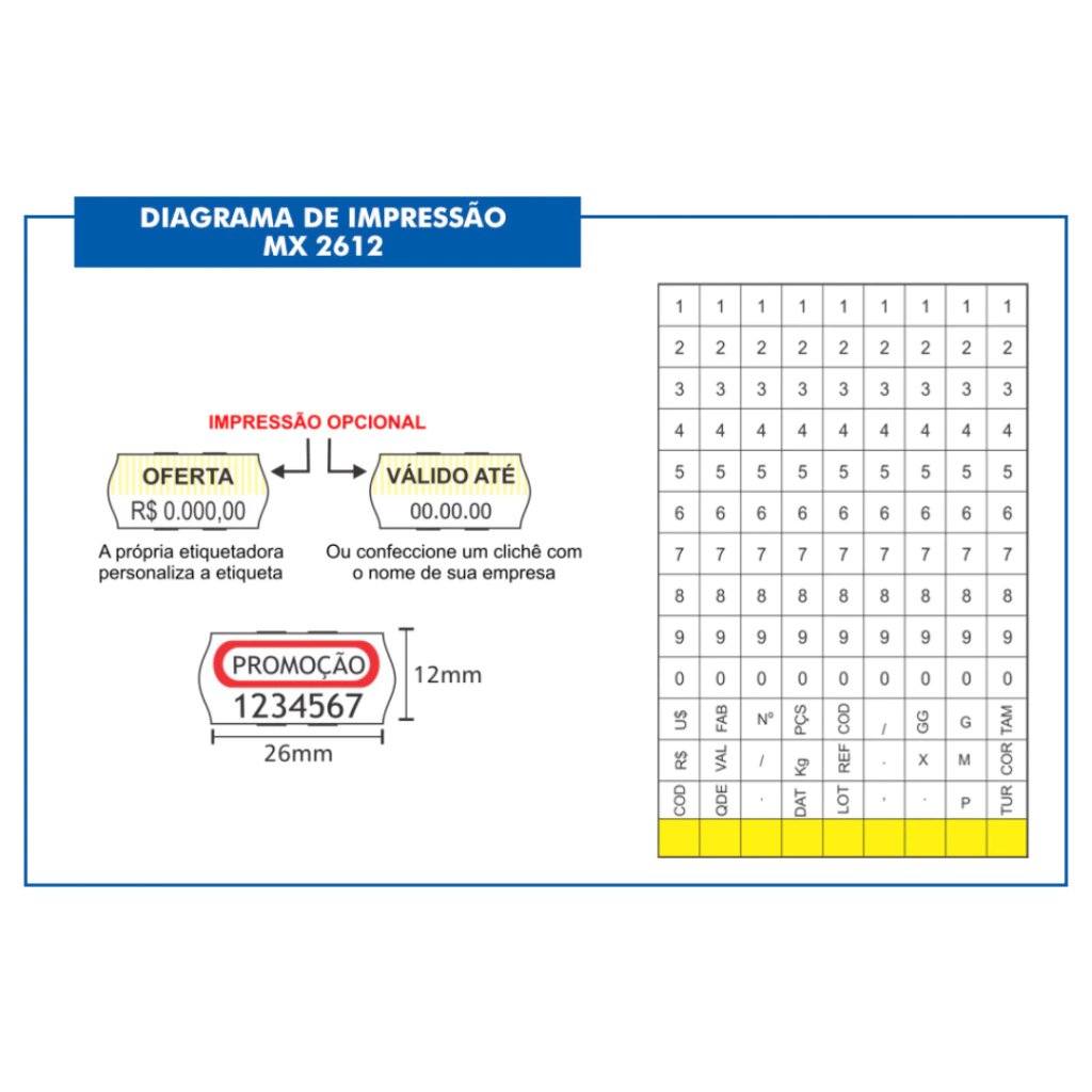 Possibilidade de impressão de até 9 dígitos. Ideal para marcar preços, códigos e datas.